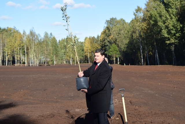 07.10.2015. Ministrs K.Gerhards bijušās Olaines šķidro bīstamo atkritumu izgāztuves teritorijā stāda balto vītolu