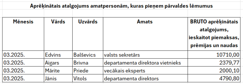 Nr. 225 “Kārtība, kādā tiek publiskota informācija par amatpersonu (darbinieku) atlīdzības noteikšanas kritērijiem un darba samaksas apmēru sadalījumā pa amatu grupām” 3.punktu.