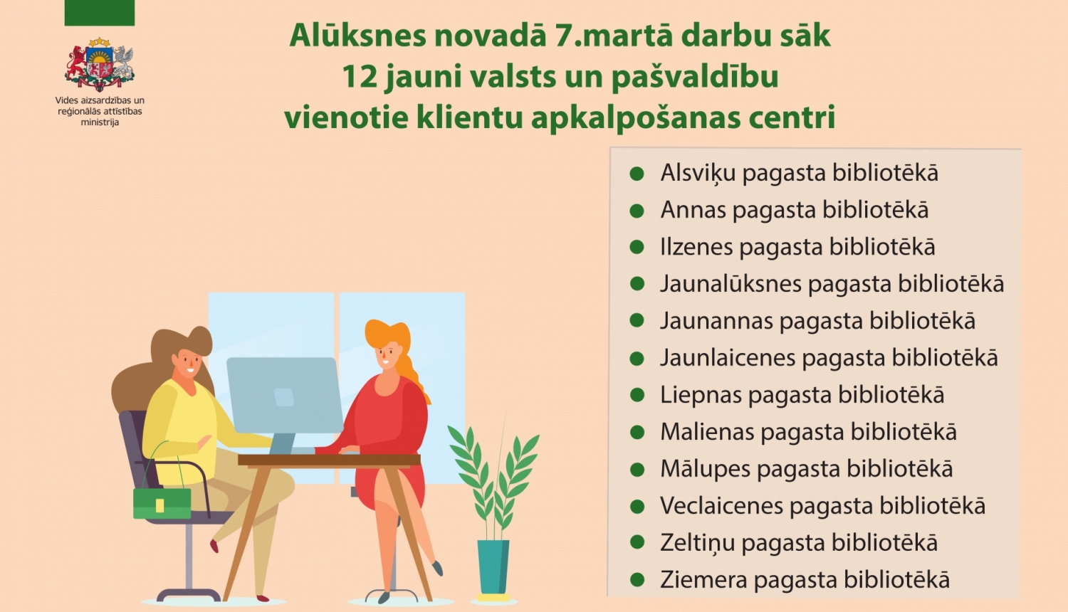 Iedzīvotāji ir aicināti apmeklēt jaunos klientu apkalpošanas centrus Veclaicenes, Jaunlaicenes, Māriņkalna, Alsviķu, Jaunannas, Annas, Zeltiņu, Ilzenes, Malienas, Mālupes, Liepnas, Jaunalūksnes bibliotēkās.